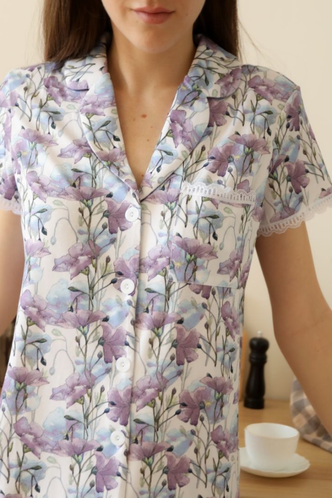 Халат прямого силуэта на пуговицах с отложным воротником. Декорирован кружевом по краю нагрудного кармана. Модель дополняют функциональные накладные карманы.Состав: Состав: Хлопок 47%, Модал 47%, Эластан 6%