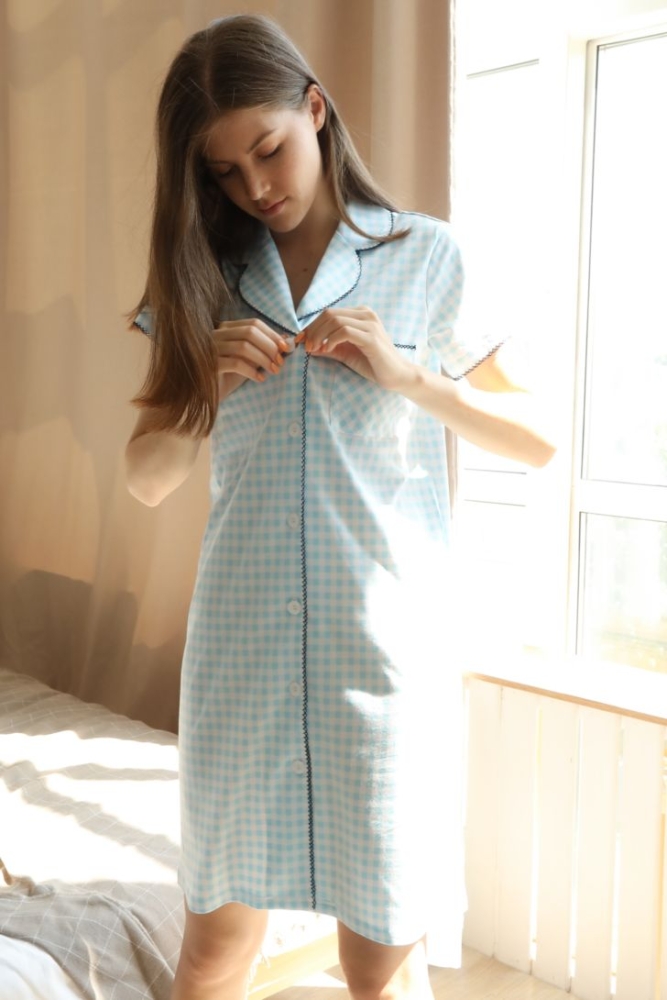 Халат с короткими рукавами на пуговицах классической длины с отложным воротником. Модель декорирована декоративной строчкой по линиям ворота, подборта и кармана. Удобная посадка, свободное прилегание, комфортная длина – а все вместе это комфорт и элегантность как дома, так и на отдыхе.Состав: Состав: Хлопок 50%, Модал 50%