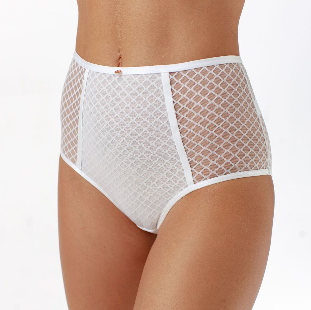 Трусы-макси с высокой линией талии. Выполнены из эластичной сетки. Украшение: медальон с логотипом COQUETTE REVUE.Состав: 85% ПОЛИАМИД/ 10% ЭЛАСТАН/ 5% ХЛОПОК