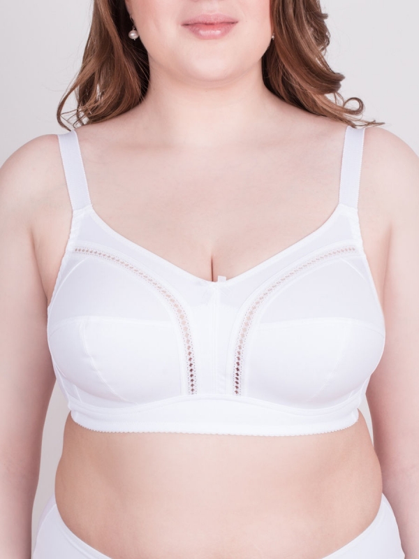 Мягкая чашка, без каркасов. Стан из эластичного трикотажного полотна. Чашка из эластичного и неэластичного трикотажных полотен. Ламинированное полотно с хлопком на нижних и боковых деталях чашки.Состав: 65% Полиамид,25% Хлопок,10% Эластан