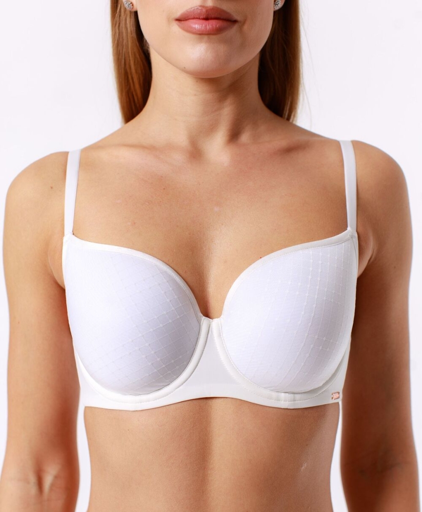 Бюстгальтер на каркасах с бесшовными формованными чашками из 3D материала Spacer (Спейсер), выполнен из сетки с декоративным геометрическим рисунком, стан выполнен из эластичной микрофибры, дублирован эластичной сеткой. Под термином «Spacer» понимается очень легкий и дышащий материал, приятный на ощупь, прекрасно держащий форму. Для поддержания формы груди внутренняя поверхность чашки дублирована двойной неэластичной сеткой. Несъёмные бретели. Украшение: медальон COQUETTE REVUE.Состав: 80% ПОЛИАМИД/ 20% ЭЛАСТАН