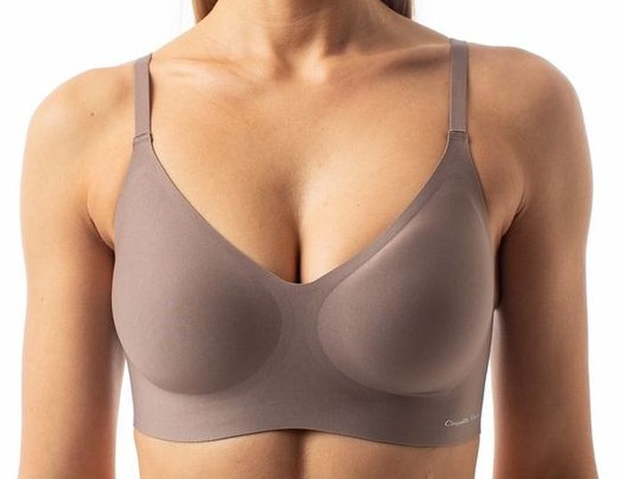 Бесшовный, бескаркасный бюстгальтер из приятного, гладкого, эластичного „clean cut” материала. Формованные вкладыши с вработанным дополнительным объёмом в нижней части. Бюстгальтер из двух слоёв полотна. Слоя соединены между собой методом горячего склеивания. Чрезвычайно удобные широкие боковые детали стана. Застёжка плоская, клееная. Бретели пришитые, с регуляцией.Состав: 70% ПОЛИАМИД/ 30% ЭЛАСТАН