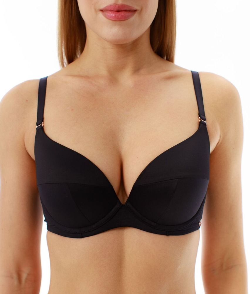 Бюстгальтер «пуш-ап» c формованными чашками. Выполнен из шелковистой микрофибры. Создает эффект роскошного декольте. Бретели съемные с регулировкой. Украшение: медальон COQUETTE REVUE.Состав: 85% ПОЛИАМИД/ 15% ЭЛАСТАН