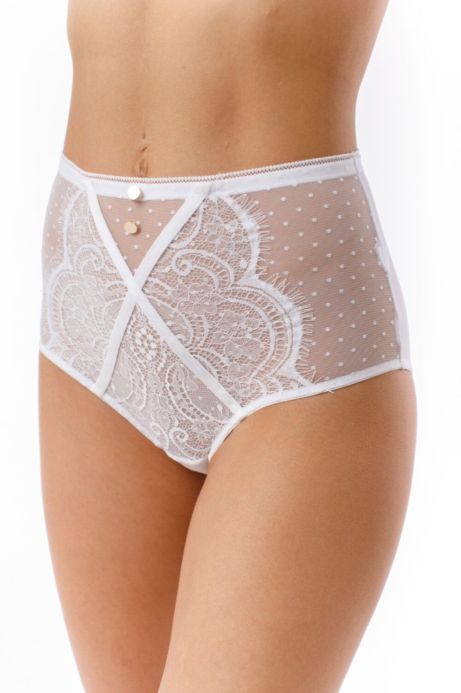 Трусы-макси с высокой линией талии. выполнен из эластичного кружева и эластичной сетки. Украшение металлические пуговицы.Состав: 85% ПОЛИАМИД / 10% ЭЛАСТАН / 5 % ХЛОПОК