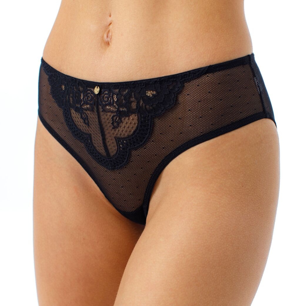 Трусы-слип со средней линией талии. Передняя и задняя детали выполнены из эластичной сетки и эластичного кружева. Проймы передней детали обработаны мягкой эластичной лентой на плоскошовной машине. Украшение: медальон с логотипом COQUETTE REVUE.Состав: 85% ПОЛИАМИД/ 10% ЭЛАСТАН/ 5% ХЛОПОК