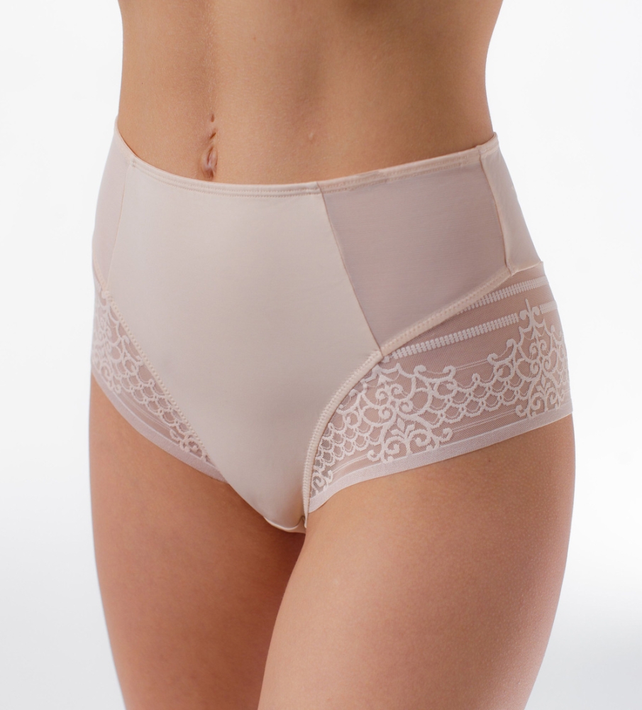 Трусы-макси с высокой линией талии. Выполнены из эластичного полотна и эластичной сетки. Украшение: медальон COQUETTE REVUE.Состав: 85% ПОЛИАМИД/ 10% ЭЛАСТАН/ 5% ХЛОПОК