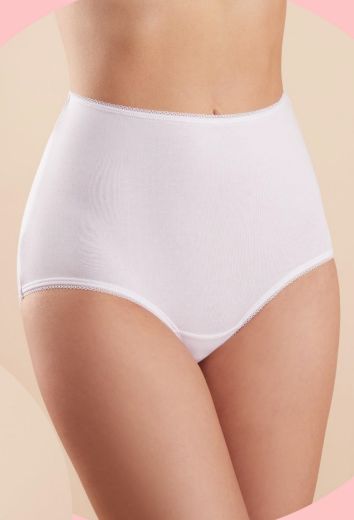Трусы слип с высокой линией талией. Комфортные хлопковые трусы для ежедневного базавого бельевого гардероба. Верхние и нижние срезы обработаны деликатной ажурной тесьмой.Состав: 95% хлопок; 5% эластан