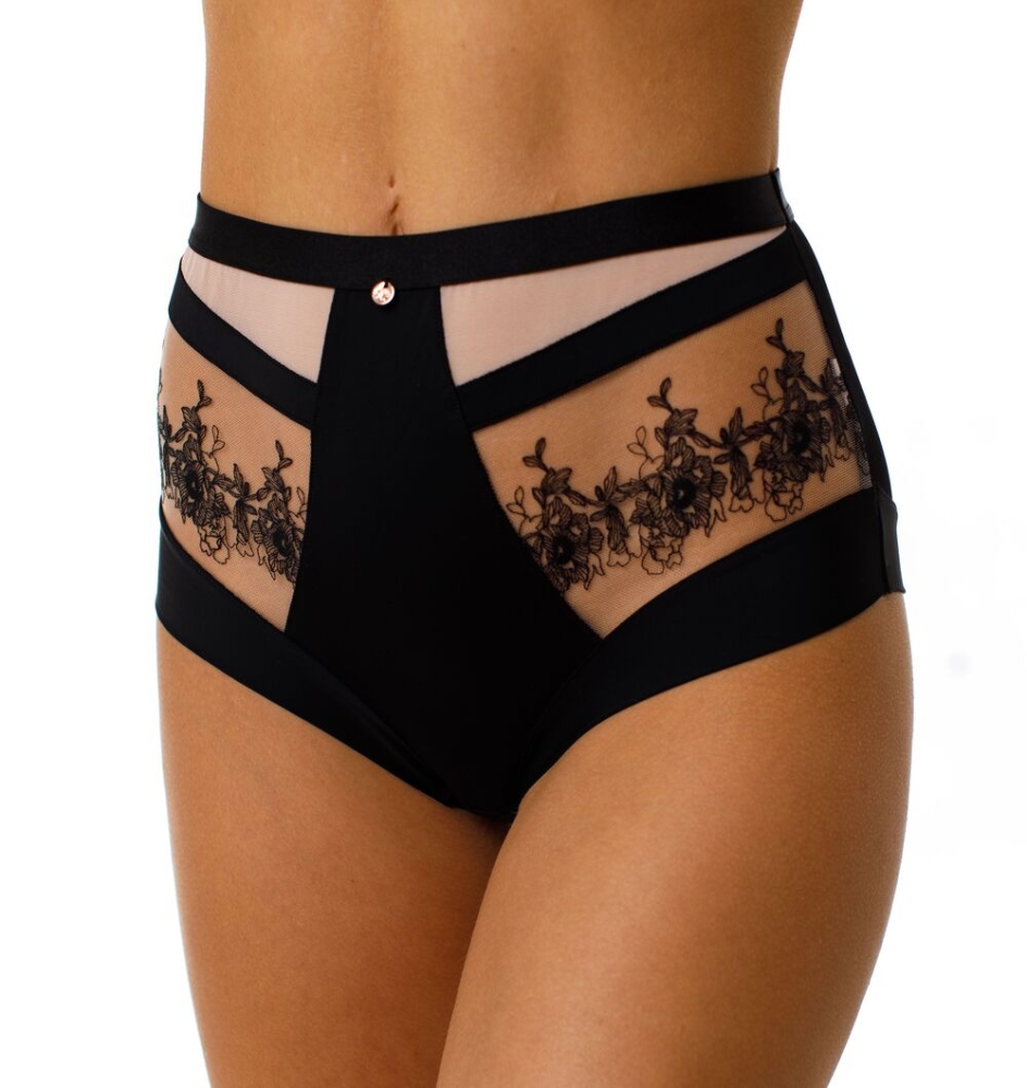 Трусы макси с высокой линией талии. Выполнены из эластичной сетки с вышивкой. Украшение: медальон с логотипом COQUETTE REVUE.Состав: 85% ПОЛИАМИД/ 10% ЭЛАСТАН/ 5% ХЛОПОК